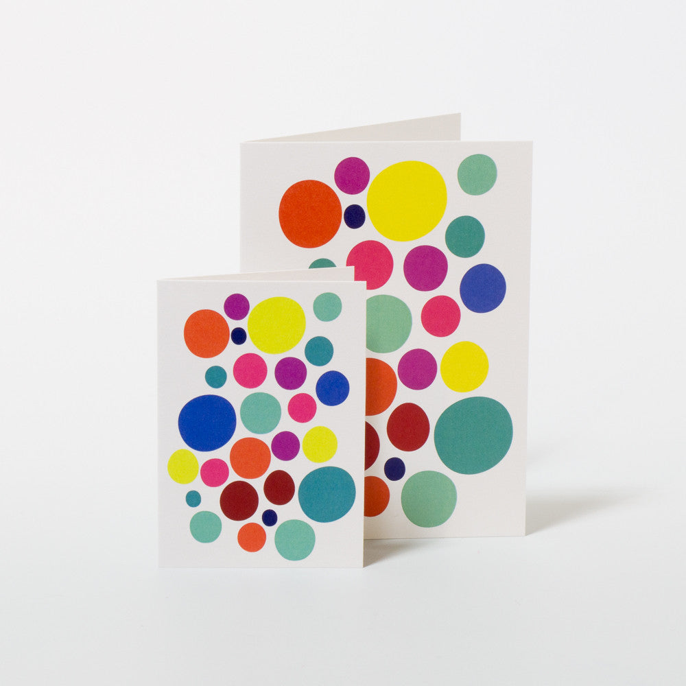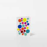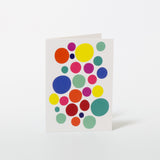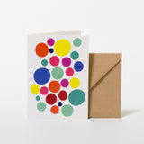 Weiße Grußkarte mit verschiedenfarbigen Punkten. Die Illustration der Grußkarte besteht aus bunten Kreisen in verschiedenen Größen, da gibt es gelbe, rote, grüne, blaue, braune, schwarze und magenta-farbene. Ob als Glückwunschkarte oder einfach für einen lieben Gruß – mit ihrem neutralen und fröhlichen Design können Sie die Grußkarte für viele verschiedene Anlässe verwenden. Sie ist für Damen wie Herren gleichermaßen geeignet.