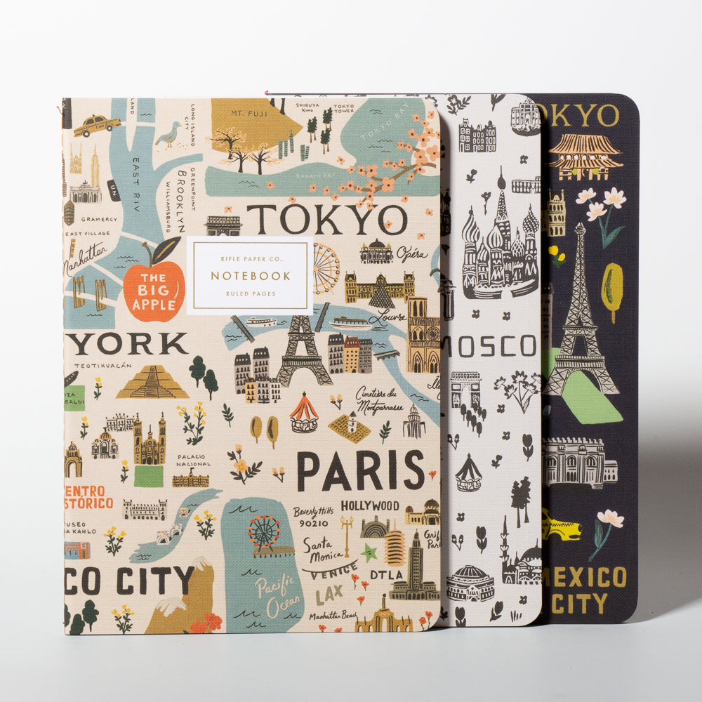 Auf der Suche nach einem schönen Geschenk für die liebsten Freund:Innen ist man bei Rifle Paper Co. immer an der richtigen Adresse - zum Beispiel mit diesen Notizbüchern "Bon Voyage". Wir können allerdings nicht abstreiten, dass die Gefahr besteht, dass sie die Bücher nie wieder aus der Hand geben möchten, sobald sie sie erhalten haben. Hier die Fakten: Das Set enthält drei Notizbücher mit jeweils 64 Seiten, liniert, goldenen Bordüre oben auf jeder Seite, bedruckter Einband mit Leinenanmutung, Fadenbindung. Die Bindung erlaubt es, dass die Bücher ganz flach aufliegen. Die Einbände featuren drei verschiedene Motive rund um das Thema Reise. Das Fernweh, das sie beim Betrachten der Bücher packen wird, können Sie hier natürlich nicht ahnen - Sie müssen uns einfach vertrauen.