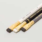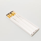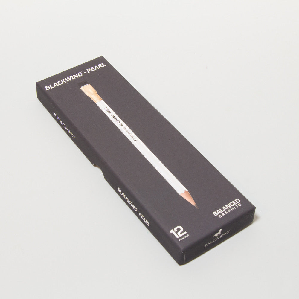 Elegante, sechseckige Bleistifte mit mittlerer Mine aus echter Weihrauchzeder. Die Bleistifte sind weiß mit leichtem Perleffekt lackiert und mit schwarzer Beschriftung. Der schwarze, abgeflachte Radiergummi wird von einer Metallklammer gehalten und kann ganz leicht ausgetauscht werden. Die zwölf Bleistifte werden unangespitzt in einer gummierten Schachtel geliefert. Erhältlich sind außerdem der Palomino Blackwing (weiche Mine), der Palomino Blackwing 602 (harte Mine) und Ersatzradiergummis.