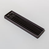 Der limitierte Vol. 24 Bleistift von Palomino Blackwing ist aus echter Weihrauchzeder. Die Bleistifte sind glänzend-schwarz lackiert und die Beschriftung wurde schwarz-in-schwarz eingeprägt. Der schwarze, abgeflachte Radiergummi wird von einer ebenfalls schwarzen Metallklammer gehalten und kann ganz leicht ausgetauscht werden. Die zwölf Bleistifte werden unangespitzt in einer gummierten Schachtel geliefert.