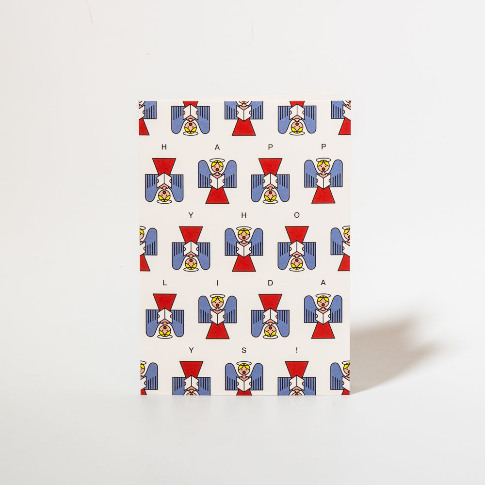 Es ist gar nicht so leicht, die Weihnachtskarten von redfries zu beschreiben. Denn wenn wir zum Beispiel über die hier, genannt Singstar, schreiben würden, dass sie im All-Over-print von singenden Engelchen bedruckt ist, dann könnte der Eindruck entstehen, sie sei kitschig. Doch genau das Gegenteil ist der Fall! Die Illustrationen von Daniela Rosenhammer sind einfach nur cool, und zwar auch auf einer Weihnachtskarte. Zwischen den rot-blauen Engeln steht "Happy Holidays!" – zu Deutsch Frohe Feiertage. Diese Grußkarte ist perfekt für Ihre weihnachtlichen Grüße und passt für Damen, Herren und Kinder!