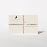 Die Rückseite der Postkarte von Rifle Paper Co. ist ebenfalls liebevoll gestaltet und illustriert. Hier gibt es genug Platz für Ihre weihnachtlichen Grüße. Die zehn Postkarten werden von einer rot-weißen Kordel zusammengefasst. Das Papier der Postkarten ist leicht cremefarben.